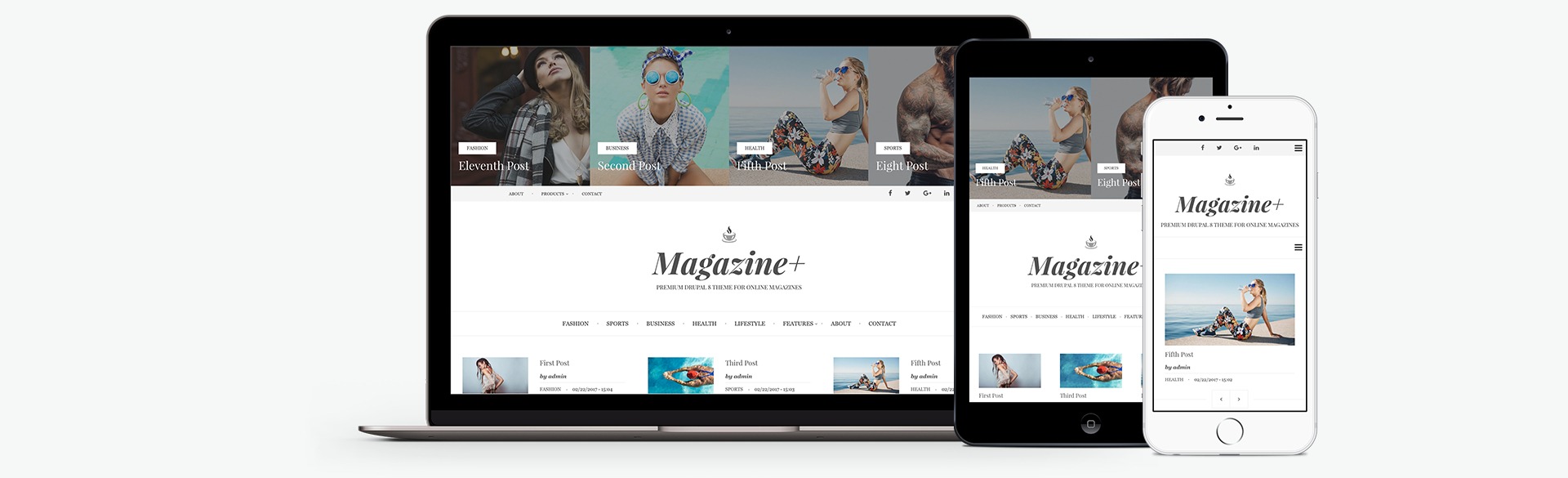 Why build Drupal stuff from scratch? Magazine+ is a great time-saver, with its special Content Types, including: “Post” (a custom type of post with special features), “Product”, “Team member”, “Testimonial” and “Slideshow Entry”, so you can quickly and easily present what’s great about your magazine, including products and team members.