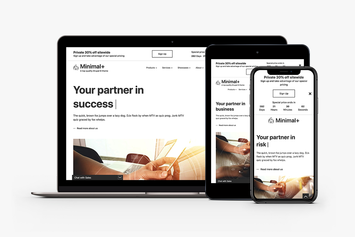 With a minimalist design and a great set of features, custom modules and 200+ theme settings for presenting products, services, client stories, articles, and testimonials.