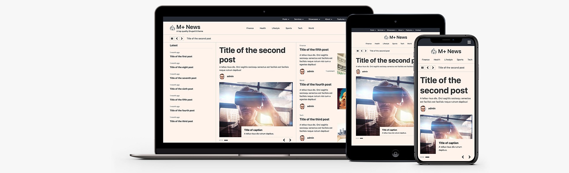 Why build Drupal stuff from scratch? Minimal+ News is a great time-saver, with its special Content Types, including: “Post” (a custom type of post with special features), “Product”, “Team member”, “Service”, and “Testimonial”, so you can quickly and easily present what’s great about your news site.