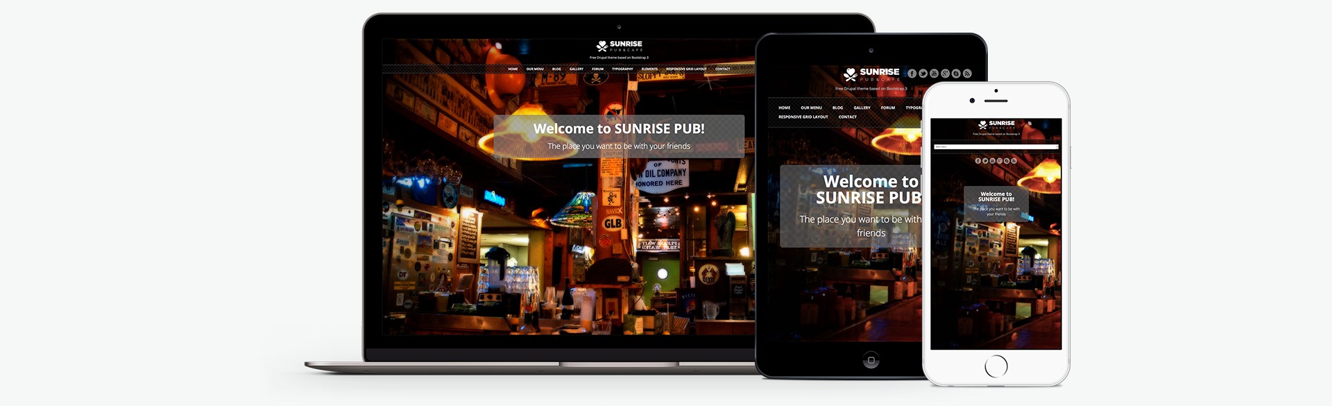 Sunrise is a responsive Drupal theme for restaurants, cafés, pubs and similar businesses, based on the homonymous WP theme by Site 5.