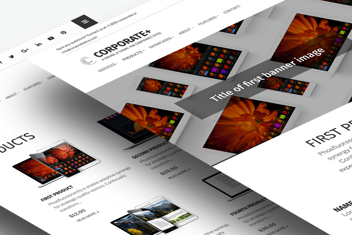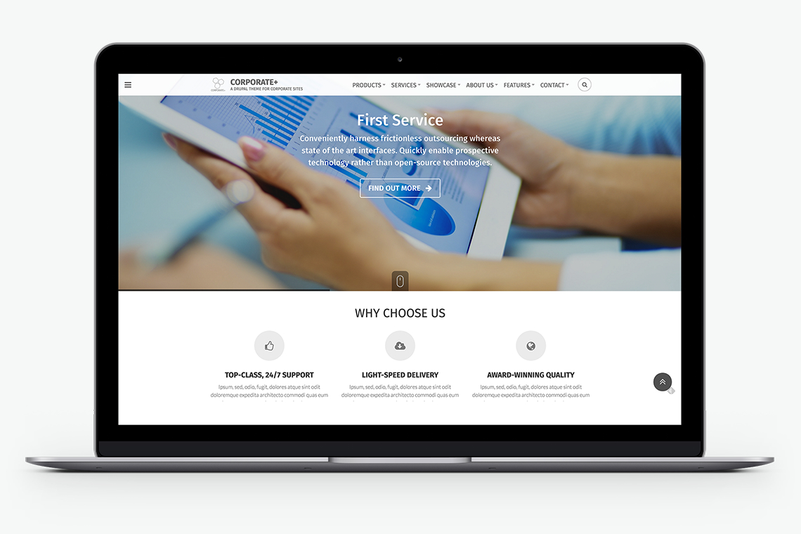 Why build Drupal stuff from scratch? Corporate+ is a great time-saver, with its special Content Types, including: “Service”, “Product”, “Team member”, “Testimonial” and “Client Showcase”, so you can quickly and easily present what’s great about your business, products and services.