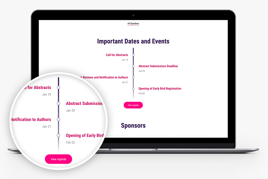 Helps you present the important dates and milestones of your event in a great way, with the built-in timeline of events. Every entry in the timeline can link to a page providing more details regarding the corresponding milestone.