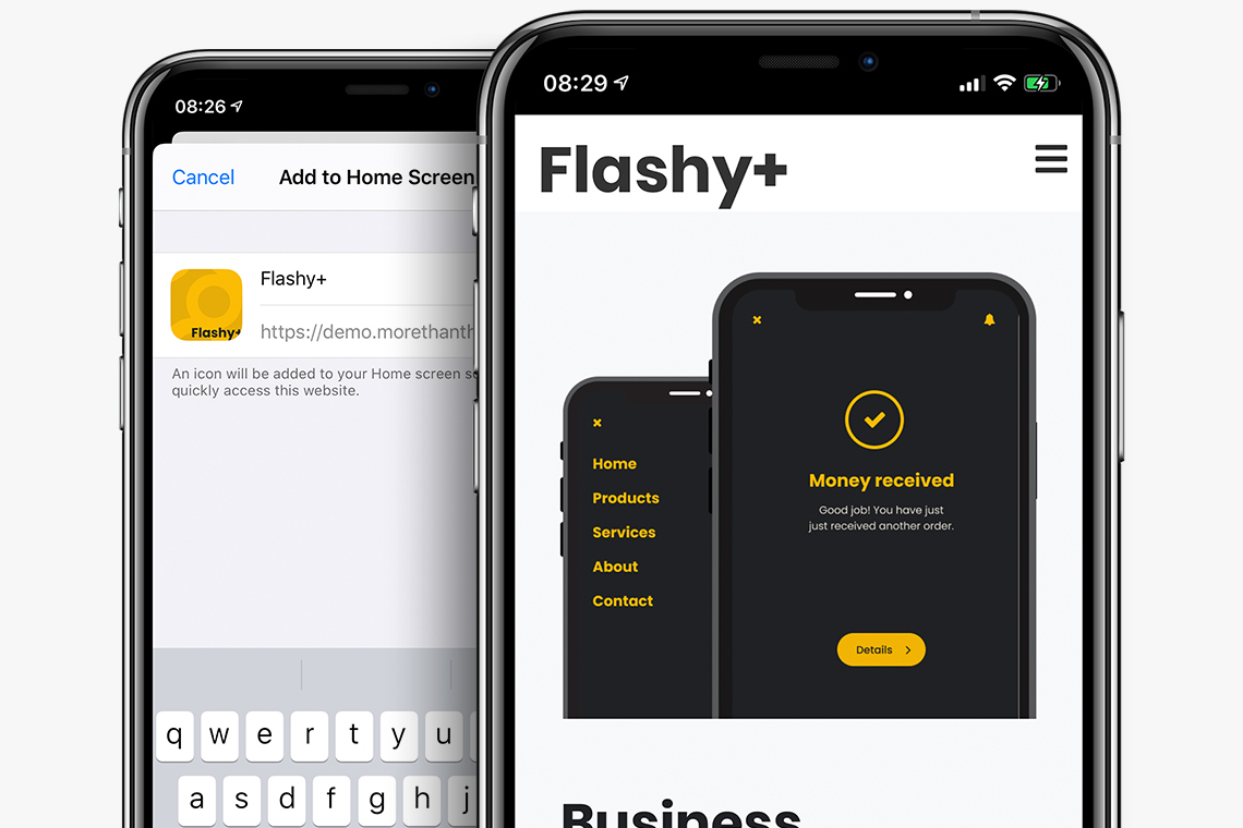 Installable and living on your visitors’ mobile devices without the need for an app store, so your visitors are always one tap away from viewing your website.