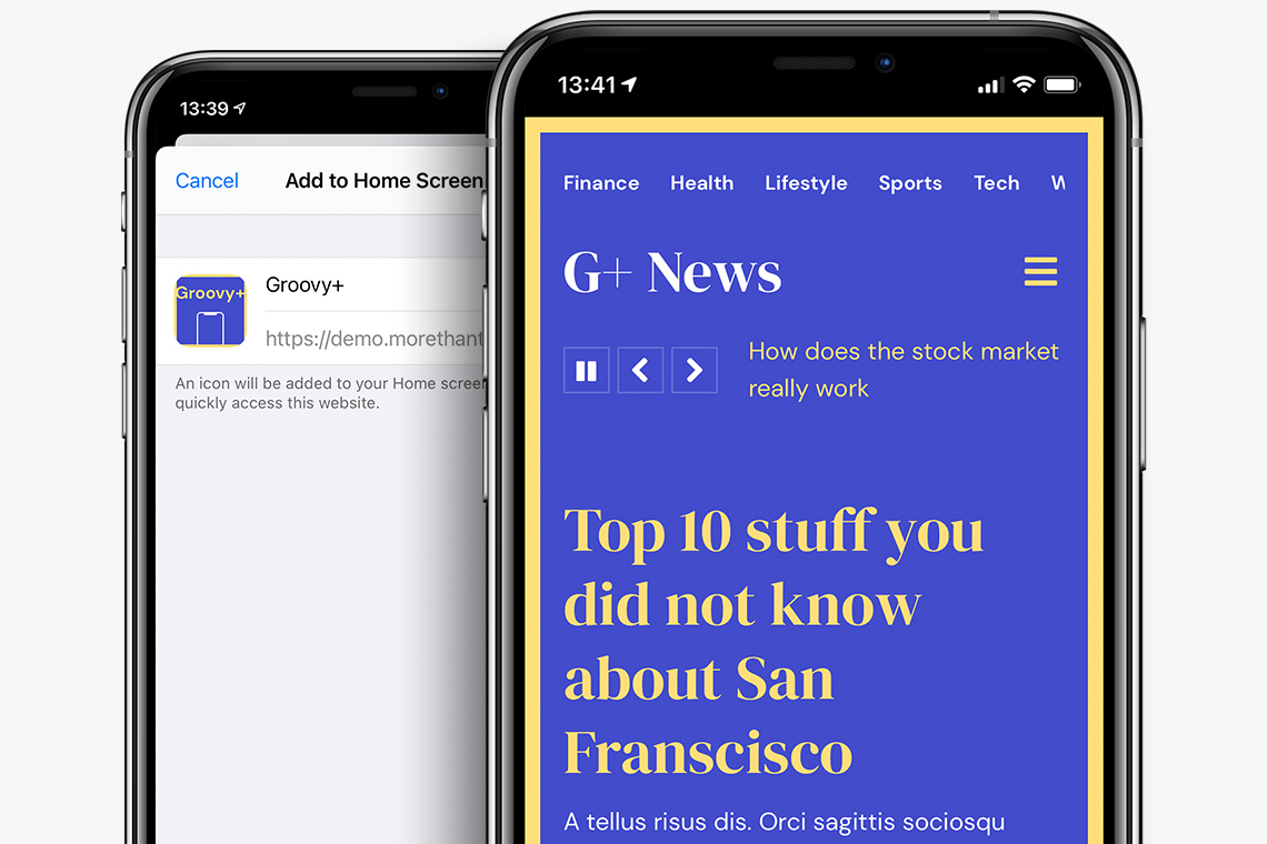 Installable and living on your visitors’ mobile devices without the need for an app store, so your visitors are always one tap away from viewing your website.