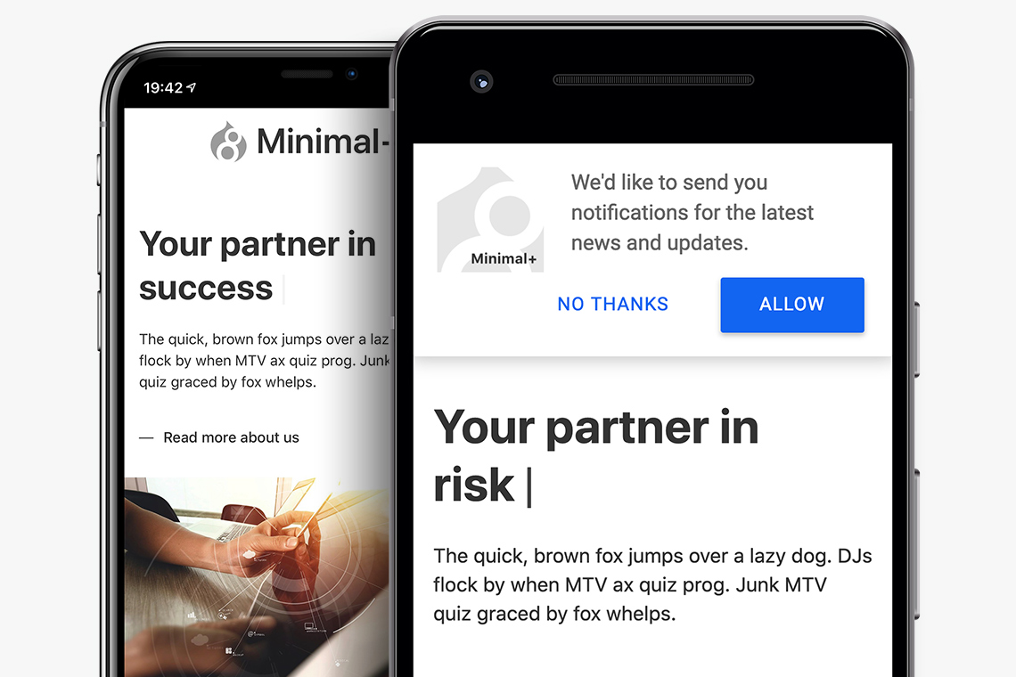 Installable and living on your visitors’ mobile devices without the need for an app store, so your visitors are always one tap away from viewing your website.