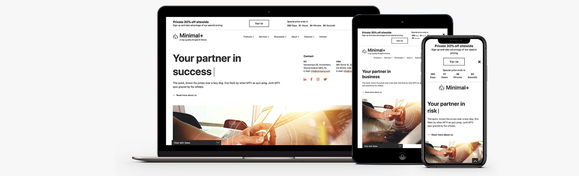 Designed specifically for the greatness introduced by Drupal 10, Minimal+ makes use of the new Block functionality and flexibility with a ton of regions and lots of built-in blocks that you can use over and over. And it doesn't end there; it comes with one more special Content Type Layouting Canvas that you can use to craft custom full-grid layouts.