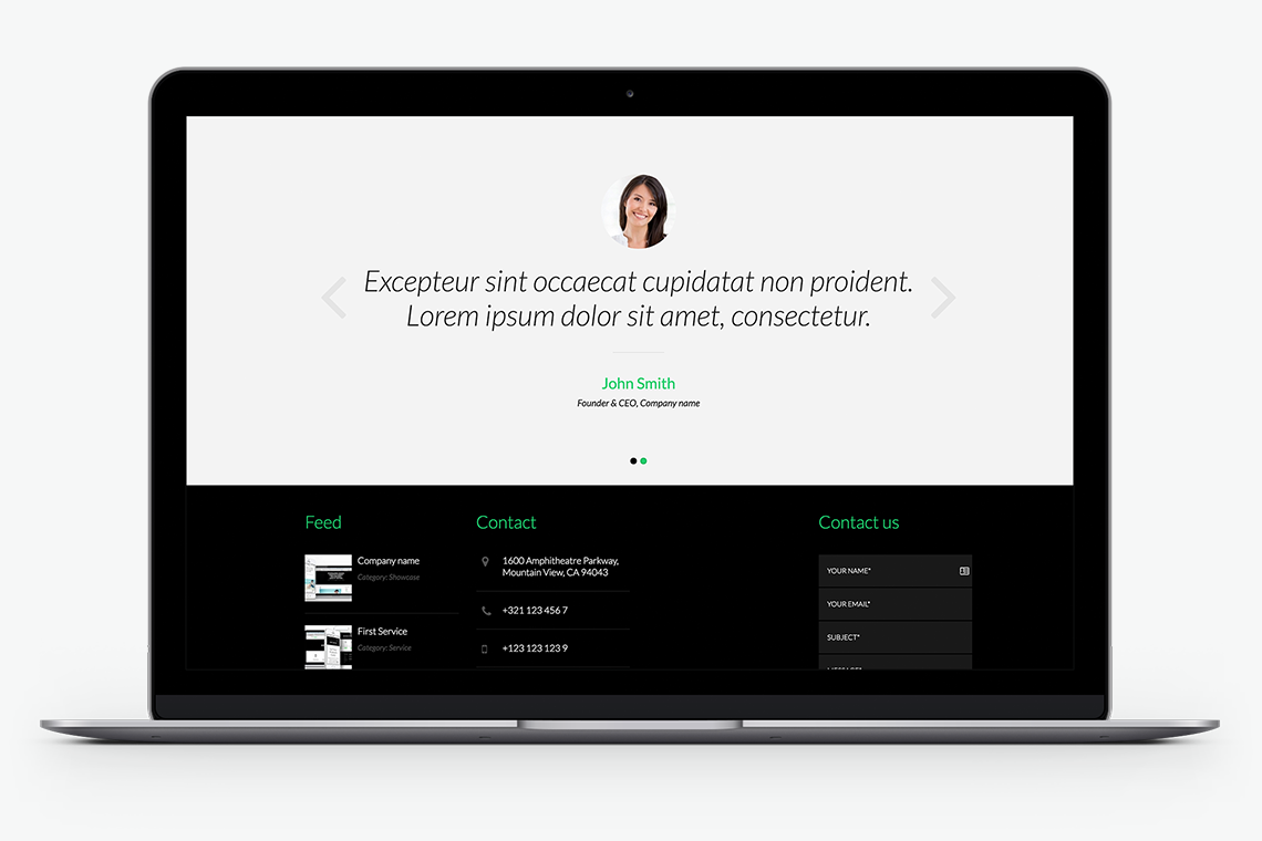10 carefully selected, awesome color schemes to choose from: Green, Blue, Night Blue, Orange, Red, Turquoise, Pink, Dark Pink, Purple and Gray. Just pick the one that fits your brand with a single click through the theme-settings.