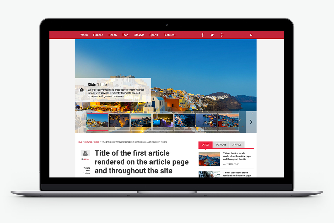 Enjoy special features only the world’s best news & article publishing sites have: Time to read, Reading progress, Print article, Font resize and accessibility buttons and, of course social media Sharing.
