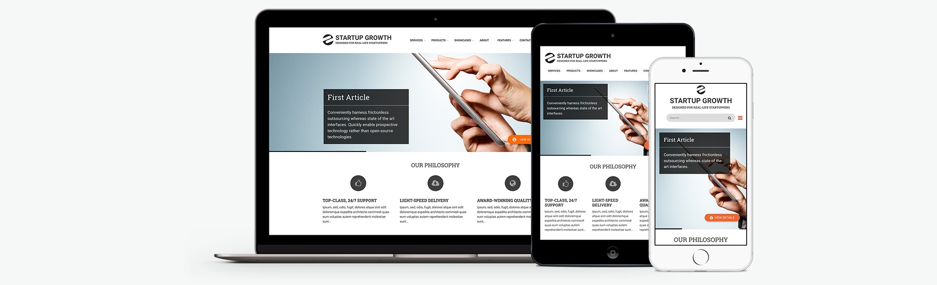 Why not have the freedom to have one, two, or three column layouts? Startup Growth supports all of those and, guess what, they've all been carefully crafted to work great.