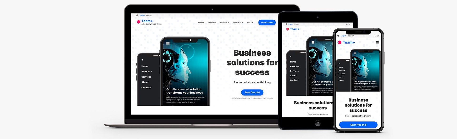 Designed specifically for the greatness introduced by Drupal 10, Team+ makes use of the new Block functionality and flexibility with a ton of regions and lots of built-in blocks that you can use over and over. And it doesn't end there; it comes with one more special Content Type Layouting Canvas that you can use to craft custom full-grid layouts.