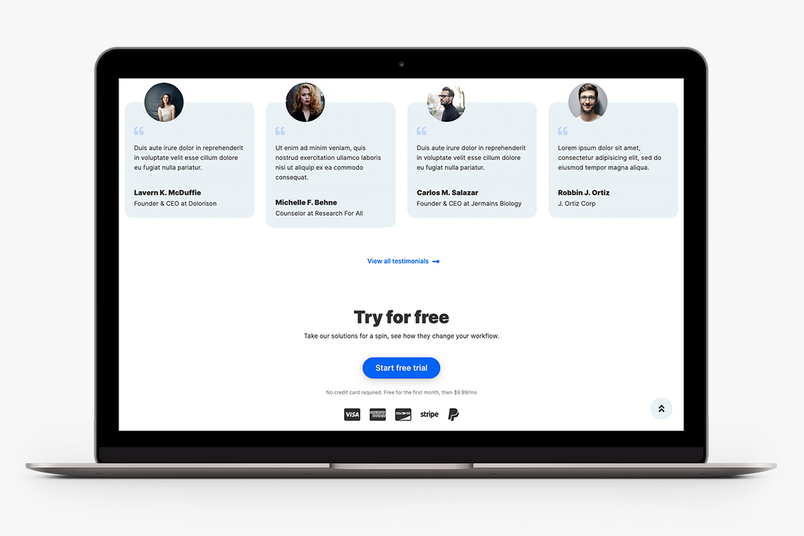 Show off the greatest words about your business, in a great way, using a Flexslider-powered slideshow.